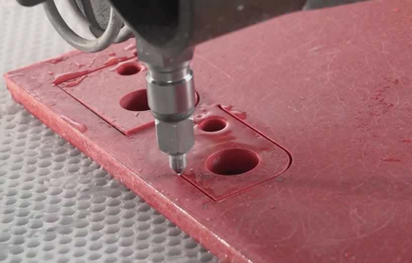 Siamo muniti di un impianto a tecnologia WaterJet per il taglio 2D di una vasta gamma di prodotti quali: gomme, materiali espansi, poliuretano, materiali spugnosi, materie plastiche, vulkollan, aclacell, materiali siliconici, compositi ecc.